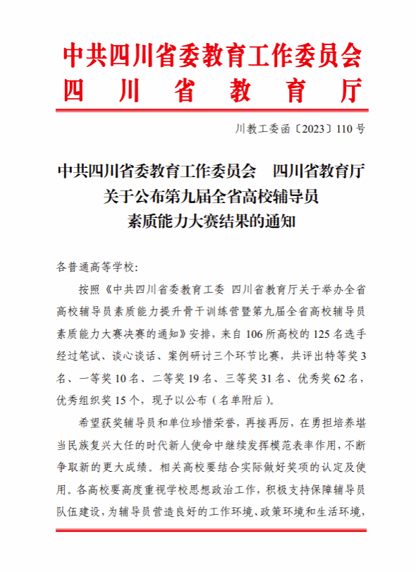 辅导员胡豪获省三等奖,是继于楠2016年获得相关奖项之后我校又一辅导员获此奖项。