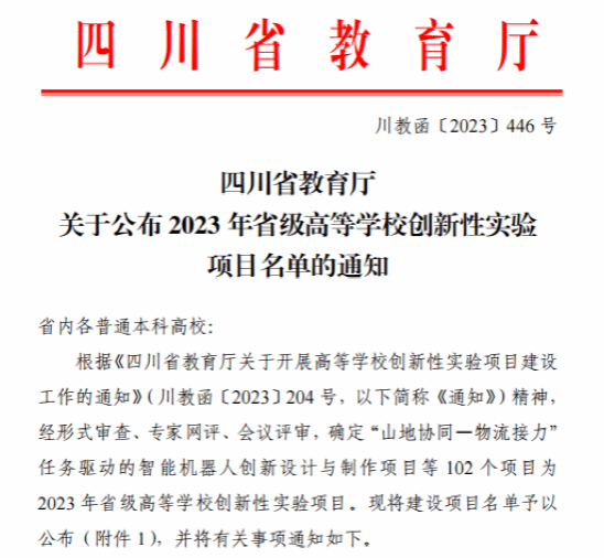 近日,四川省教育厅下发了《关于公布 2023 年省级高等学校创新性实验项目名单的通知》(川教函〔2023〕446号),色情直播 智伟老师作为负责人的项目《高效骨再生动态动态功能化组织工程骨的设计和构建》成功获批。