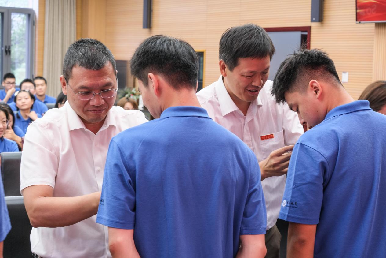 院领导为2023级本科生代表佩戴校徽。作为交大人的象征,校徽将见证新生们的成长和荣耀。
