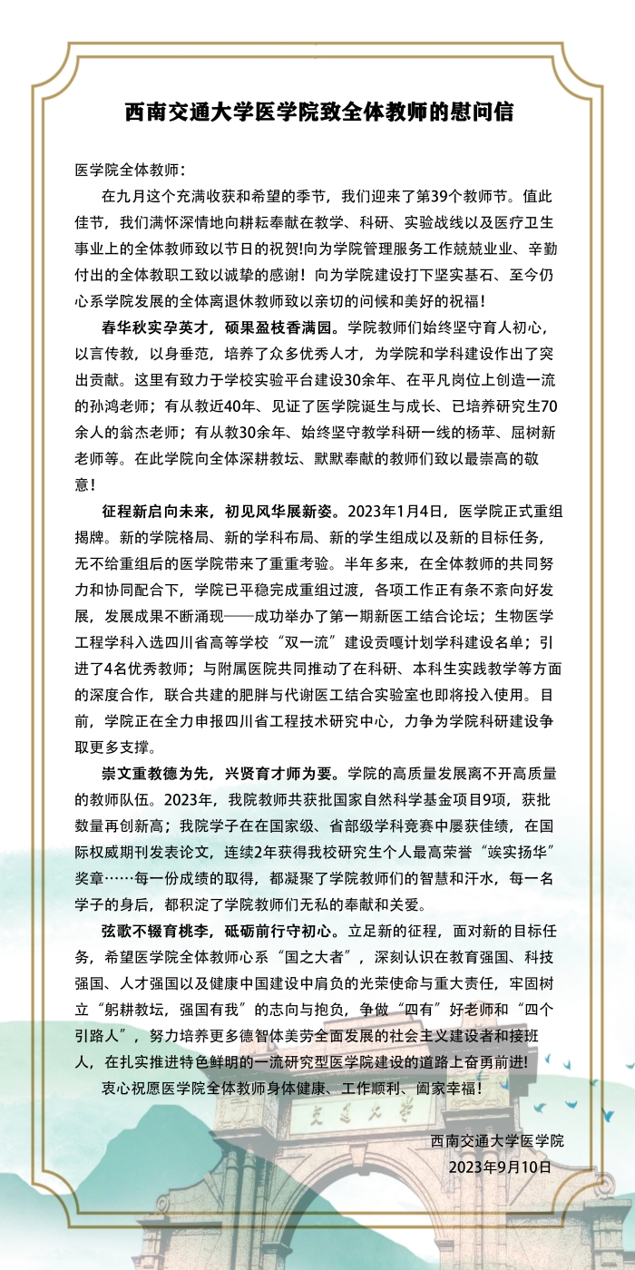 下一篇:【医路生花迎新季】真情系新生,关怀送温暖——学院领导老师慰问2023级军训本科生