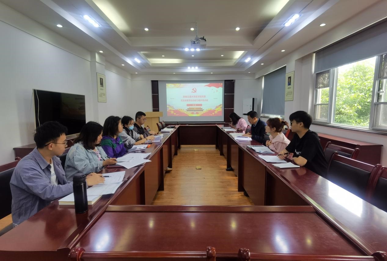 4月26日至8月初,学院党委以“先自学再集中”的模式安排了7个专题读书班学习,上午为推荐资料或指定书目的自学,下午为对应专题的集中巩固学习。开展红色剧目沉浸式体验学习1场。领导干部、党支部书记共讲授专题党课8场,邀请专家开展辅导报告1场,先进典型讲党课1场,听课人员覆盖全院教职工及学生党员、入党积极分子。各学生党支部共开展“红色之旅”实践学习4场,开展读书分享、主题党日等各类活动18次。学院党委于“交大医学”微信公众号推出“学习进行时”指尖课堂活动,推送“学习金句”5期,“学习竞答”5期,“学习心得”1期,开展线下“金句三分钟”分享活动7次。