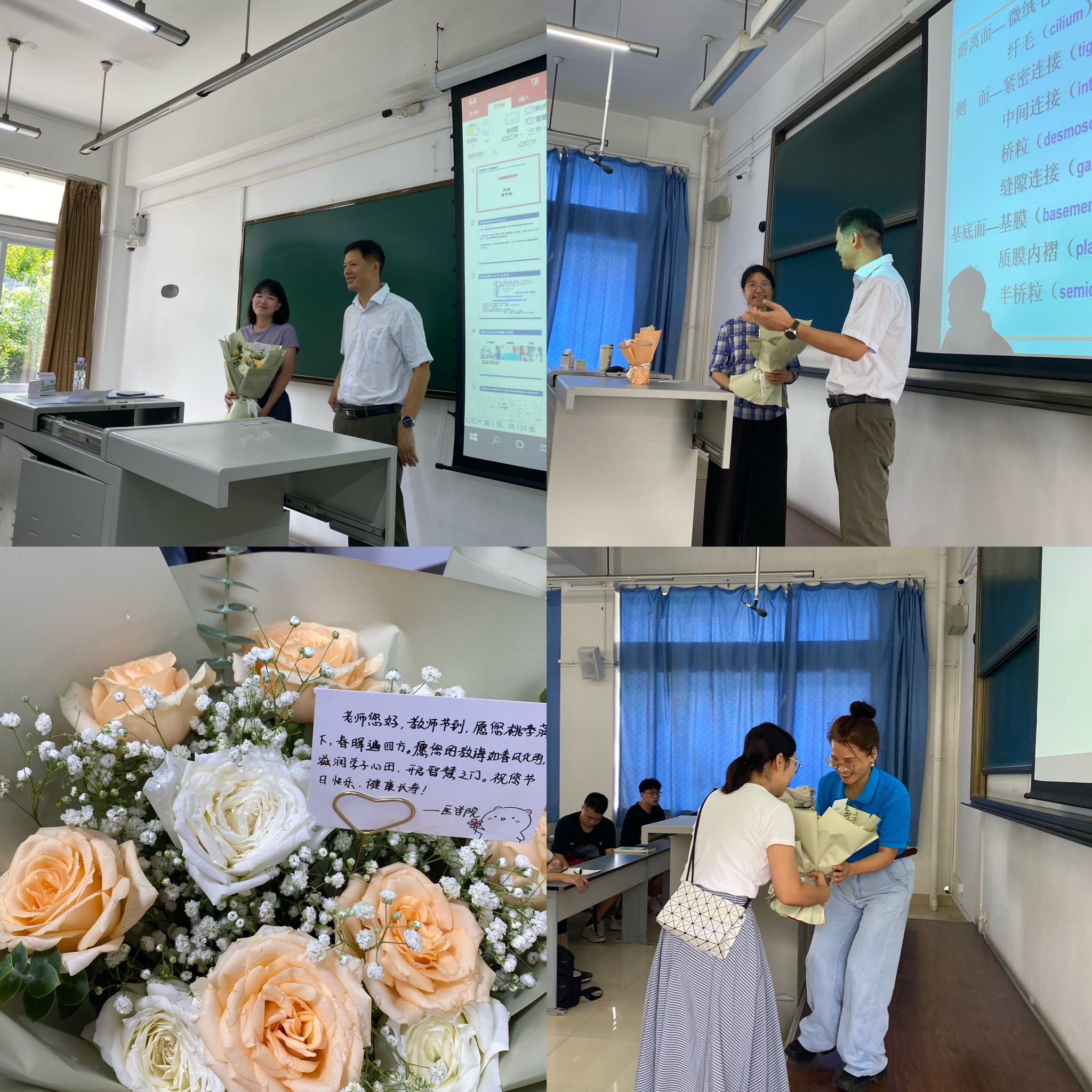 学院温情献花,感恩教师付出。10日,学院党委书记李锦红、党委副书记于楠手持鲜花,走进教室,为即将上课的老师们送上节日的祝福。每一束鲜花都承载着学院对老师们辛勤耕耘的感激之情,也象征着对教育事业美好未来的期许。