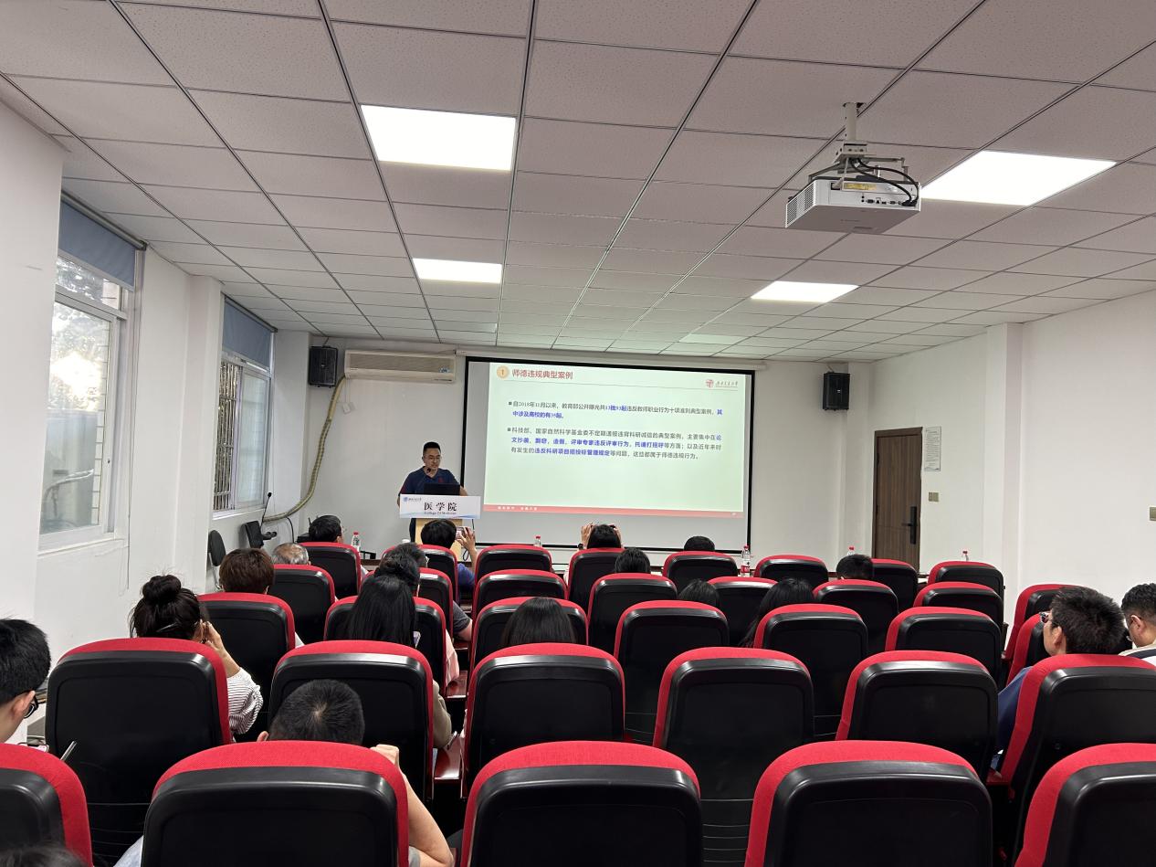 4月17日下午,色情直播 召开全体教职工大会,邀请学校教工部思政与师德师风建设科科长崔健老师为全院教职工进行了题为《大力弘扬教育家精神 争做新时代“大先生”》的师德师风及警示教育。