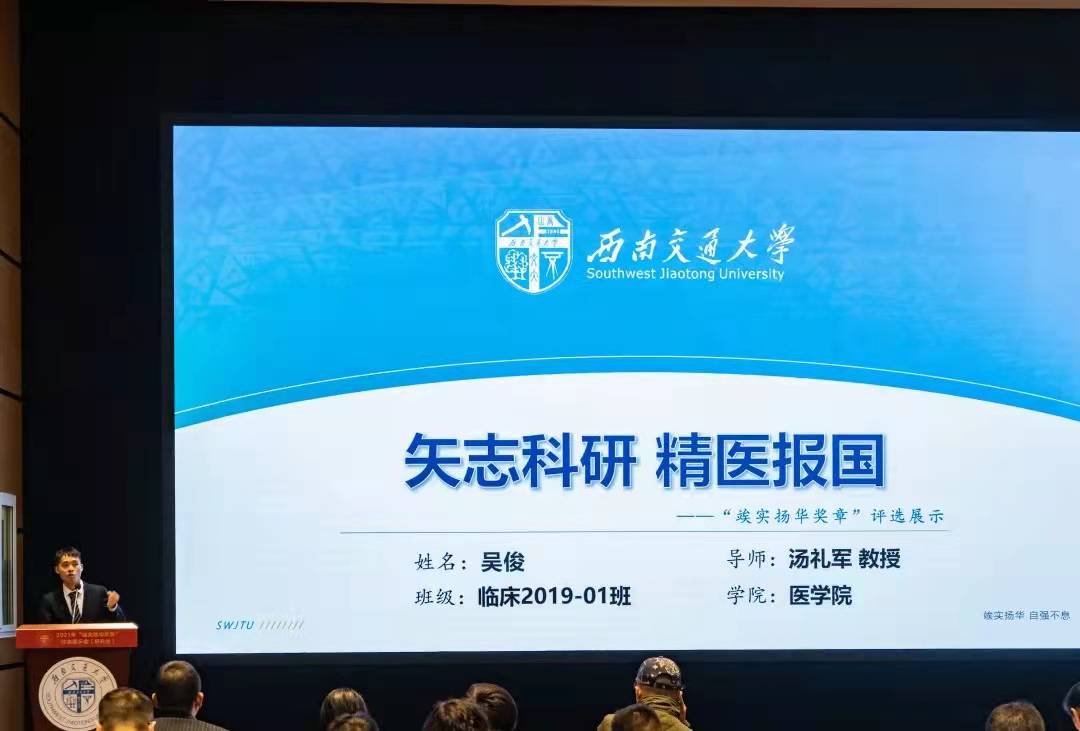 临床2019-01班学生吴俊荣获2021年“竢实扬华奖章”。该奖项是我校学生个人最高荣誉,今年在全校硕士研究生中评选出3名。