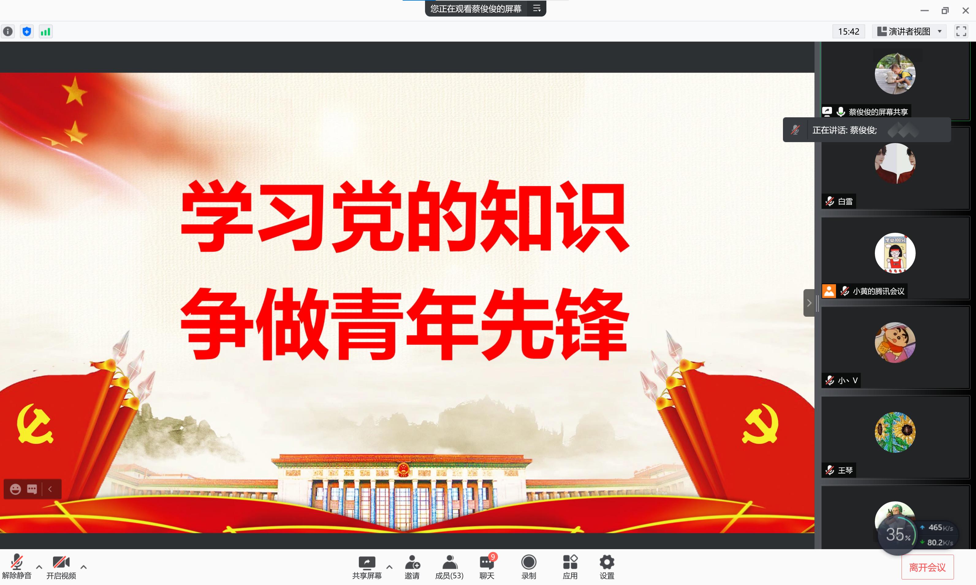 组织员蔡俊俊老师担任主讲人。
