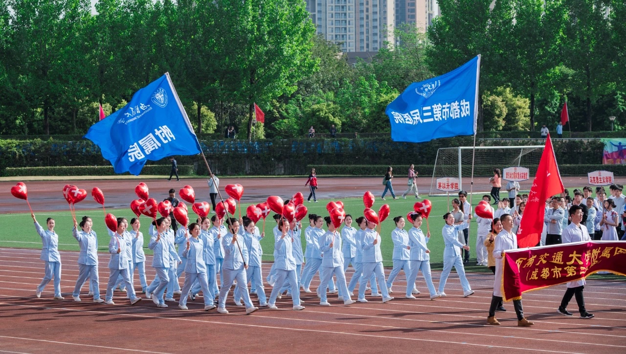 和附属医院师生迈着坚定整齐的步伐,挥舞着红色气球,铿锵的口号在操场回响。昂扬向上,努力聚合附属医院、西部战区总医院和学校的特色与优势,奋力拓展医学学科,在建设具有医工结合色情直播