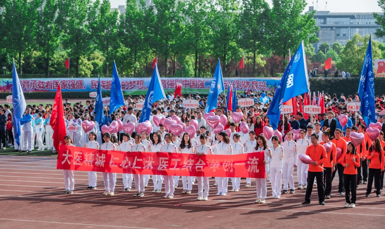 和附属医院方阵昂首奋进,尽显青春活力。他们在拓展医学学科的道路上昂首奋进,他们白衣执甲逆行出征,他们用担当谱写抗疫赞歌,他们用大爱诠释医者仁心。他们的蓬勃朝气和飒爽英姿在运动场上成为了一道亮丽的风景。