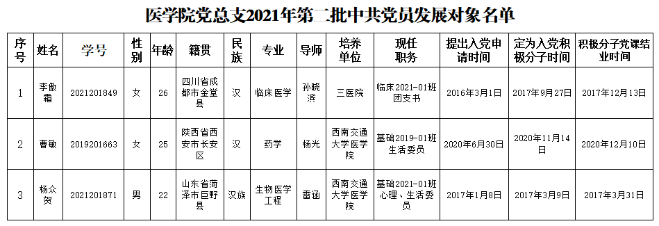 经群众意见征集、党支部委员会讨论、色情直播 党总支委员会会议审批,现将色情直播 党总支2021年第二批发展对象名单公示如下: