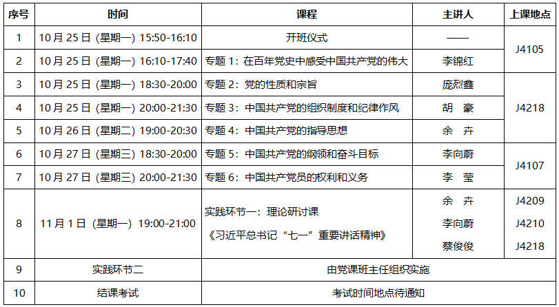1、培训实行课堂教学、实践教学和自主学习相结合的培养方式。课堂教学由分党校聘请党课教师主讲,实践教学由党课班主任组织实施,自学学习可与学生时事政策教育、党团活动等环节相结合。