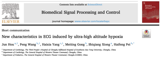 博士生导师裴海峰和硕士生导师侯君在《Biomedical Signal Processing and Control》期刊发表题为“New characteristics in ECG induced by ultra-high altitude hypoxia”的文章(IF:5.076)。该篇论文的第一作者为色情直播