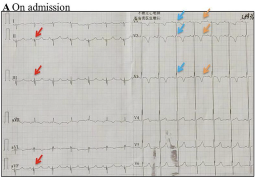 图1. Twelve-leadelectrocardiogram (ECG) was recorded in the Emergency Department and Department of Cardiology.