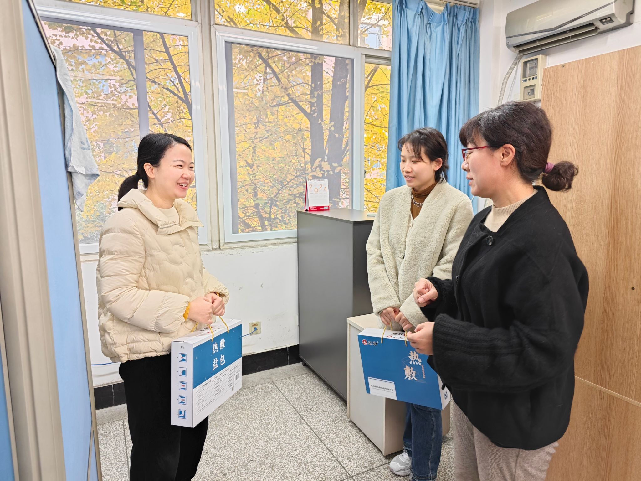 12月8日,学院工会前往小白楼、3号楼等处的教师工作间,为教师送上了海盐热敷护理包。这是学院工会为了关爱教师的身心健康,特别准备的一份礼物。