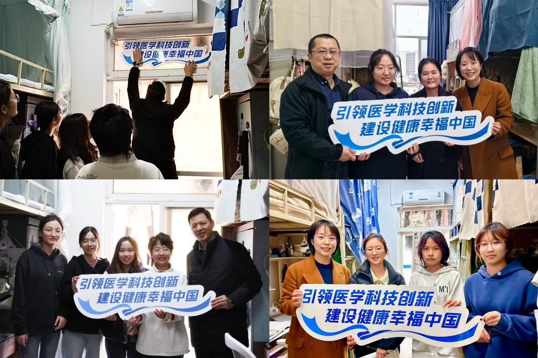 党委书记李锦红,副院长冷永祥,党委副书记于楠,团委书记胡豪,辅导员王川玲、张佳豪一同深入学生宿舍,为学生宿舍授牌。同学们纷纷表示要每天读一遍标语,激励自己努力成长成才,希望在未来能为“引领医学科技创新,建设健康幸福中国”做一份贡献。