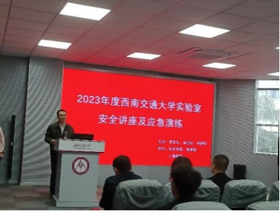 实验主管郑晓彤主持了安全培训讲座,资实处副处长闻毓民,保卫处副处长朱云峰,消防科科长吴小平,科研院张化雨老师,化学学院副院长崔树勋分别从不同角度向同学们强调了安全、特别是实验室安全的重要性和重点注意事项。
