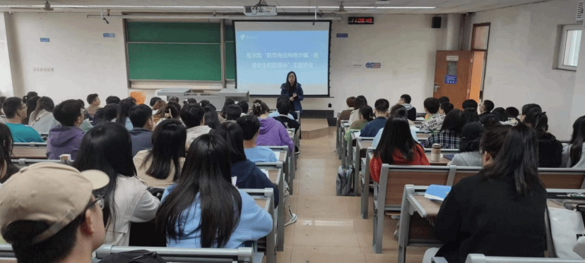 新生开展防范电信网络诈骗专题讲座,赵磊警官结合多年工作经验和相关真实案例,通过揭秘多种诈骗手段、普及防骗防诈知识提升新生安全防范意识和能力。同时,组织全体新生下载“熊猫反诈”app并集体签署了《防范电信网络诈骗承诺书》。