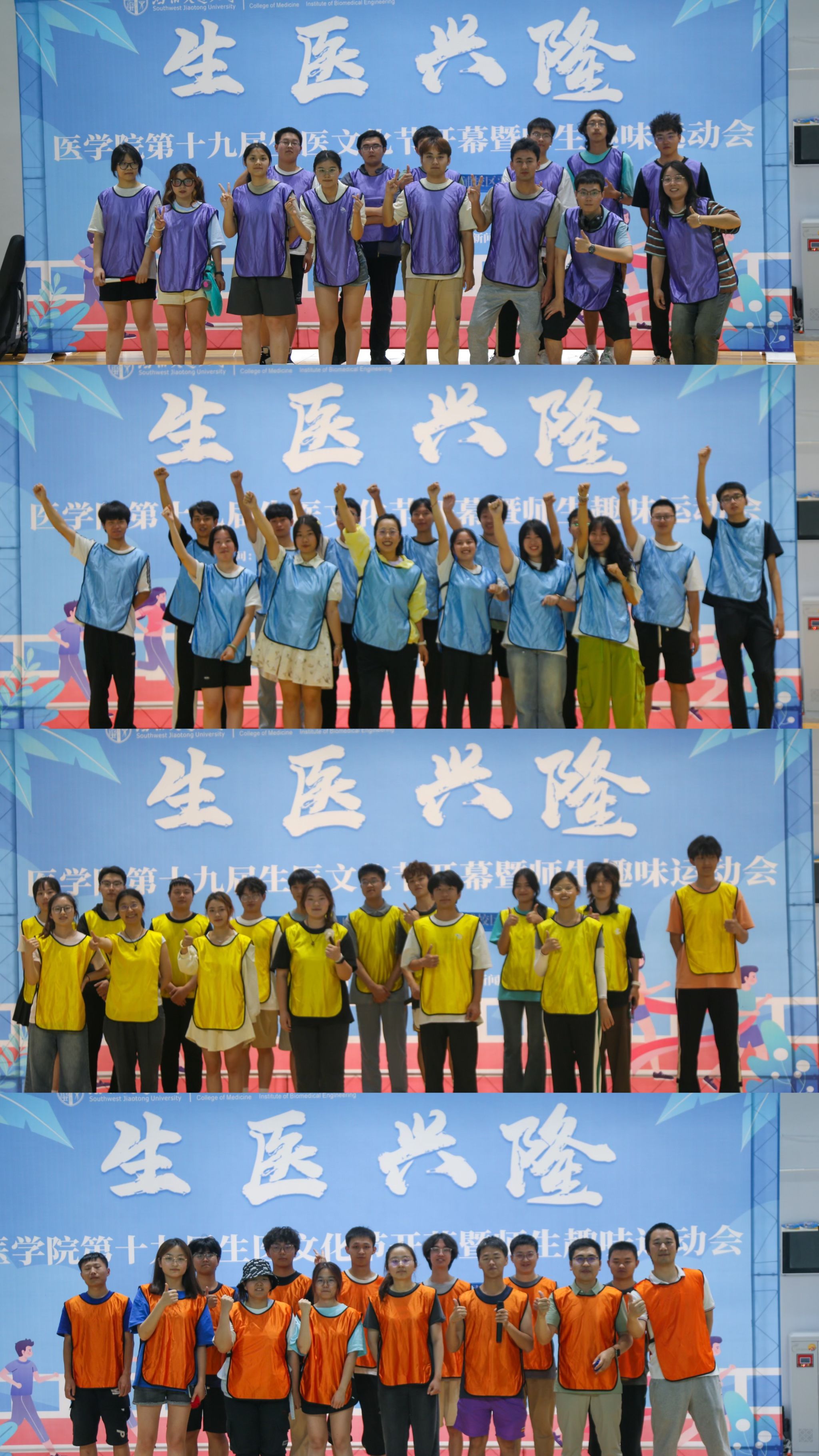 经过激烈的角逐,紫队以出色的表现获得了第一名,队员们高喊“紫定能赢”的口号,庆祝他们的胜利。大家纷纷表示,这次生医文化节不仅让他们感受到了运动的快乐,也增进了彼此之间的友谊和了解。