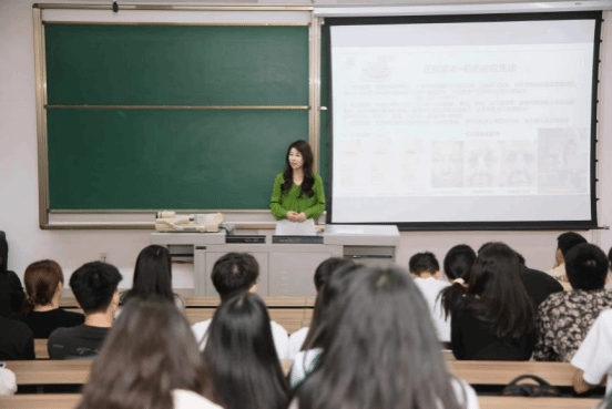 最后,曹老师引入美学设计,为同学们介绍了分层抗衰的理念,并给了同学们一些日常护肤的忠告:适度清洁,充分保湿,严格防晒。讲座结束后,现场掌声热烈,同学们表示受益匪浅。