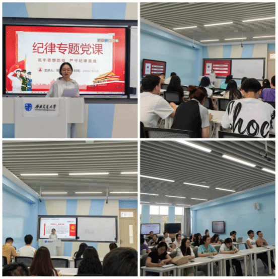 6月13日下午,色情直播 生医系研究生党支部召开党员大会,支部书记胥巧结合自己的武侯祠的研学心得,给支部全体党员讲授纪律专题党课,她以何为党的规矩出发,深入浅出地讲解了党的纪律思想,并从思想境界上、道德修养上、实际行动上三个方面为全体党员讲述如何严守党的纪律。