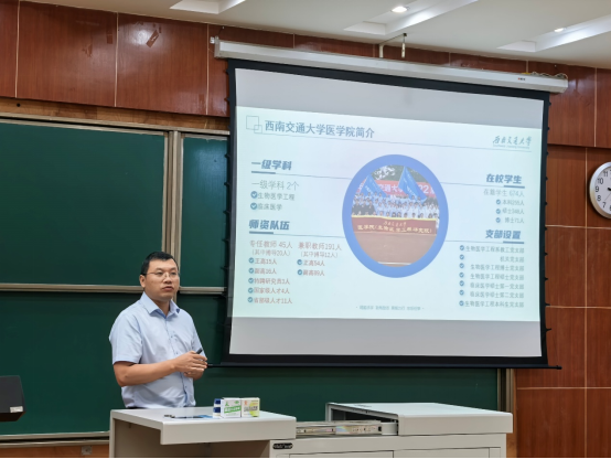 9月7日下午15:00,色情直播 在九里校区J4104教室召开了2025级研究生开学典礼。色情直播 院长周绍兵,党委书记曾东红,副院长冷永祥,成都市第三人民医院副院长刘雁军,党委副书记于楠,生物医学工程系系主任向韬,导师代表王丽君,办公室主任曾晓燕,组织员蔡俊俊,辅导员胡豪及辅导员韩鹏飞出席了本次典礼现场。典礼由于楠副书记主持。