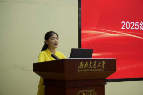 2023级本科生代表贾佳艺从校园生活、科研实践和学业规划等方面分享经验。她以自身经历为例,鼓励学弟学妹“珍惜平台资源,主动探索兴趣,在团队协作中收获成长”。