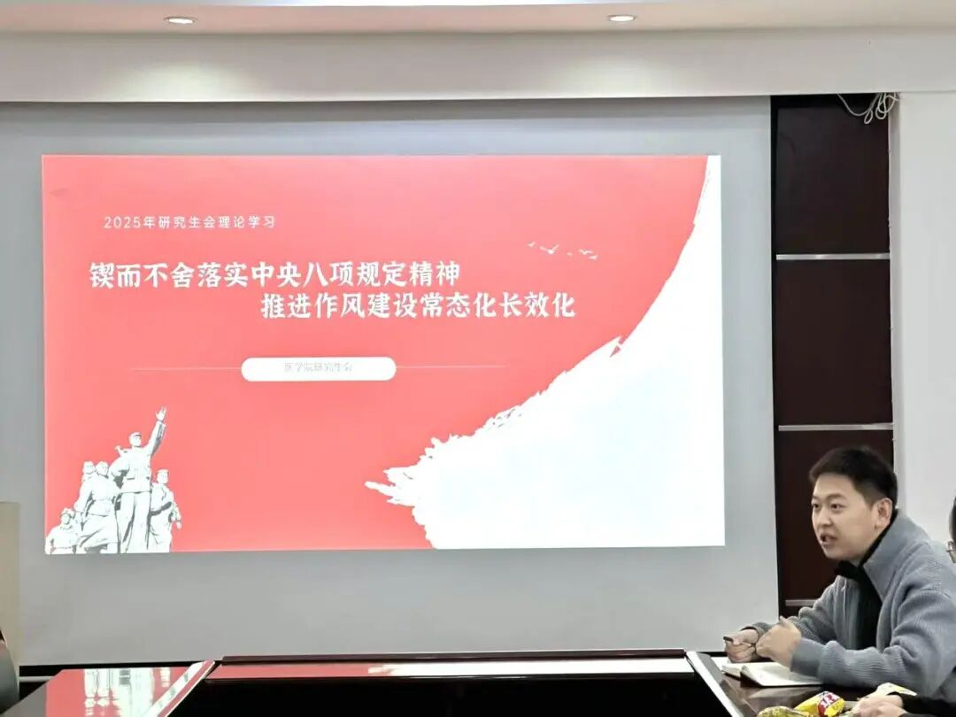 A座204会议室召开理论学习暨新学期工作部署会,会议由研究生会指导老师韩鹏飞和研究生会主席团成员邓宇主讲,研究生会全体成员参会。会议旨在通过理论学习统一研会干部认识,为新学期有序开展各项工作明晰路径。