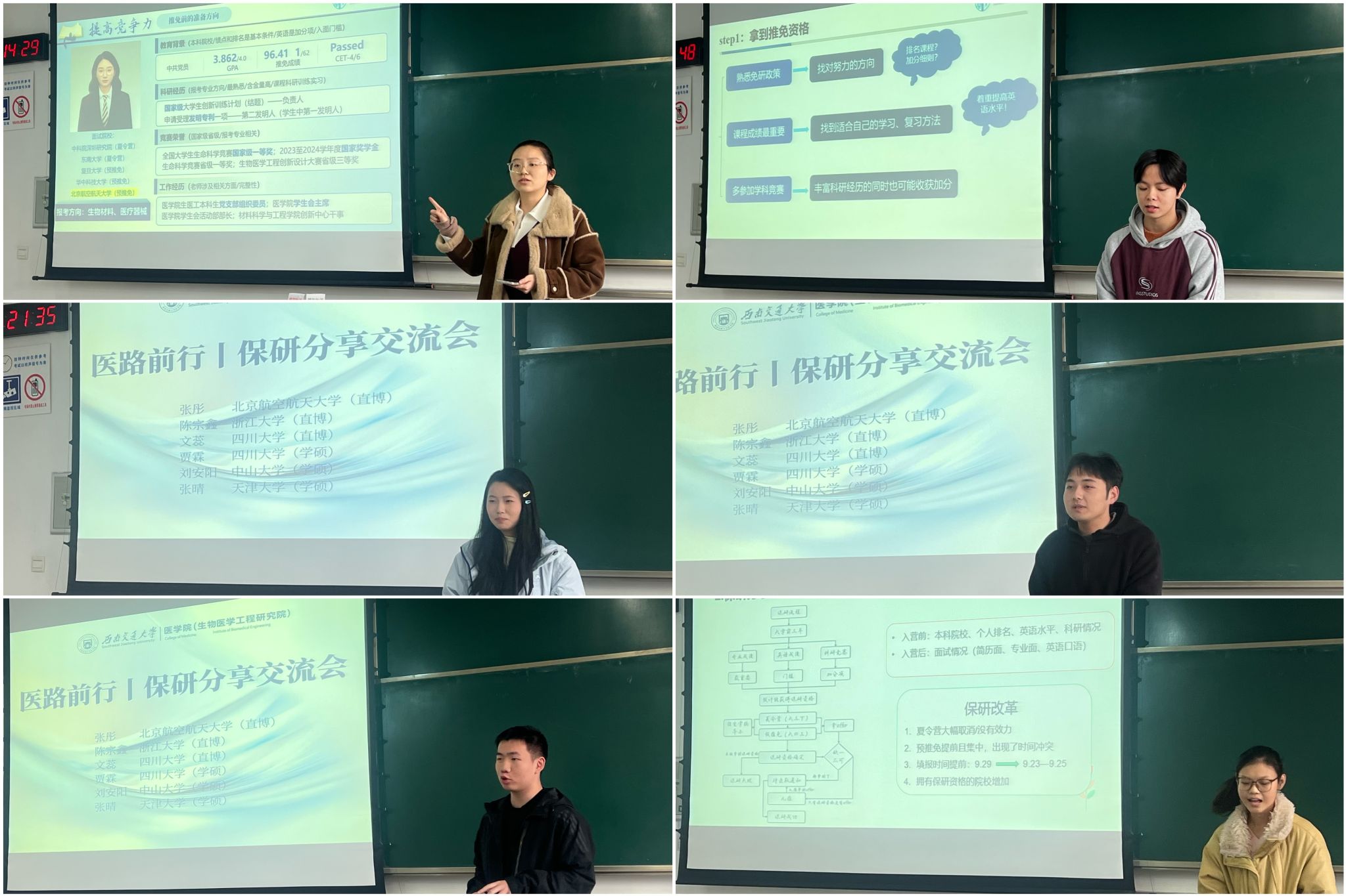 生物医学工程本科生党支部联合班团建设中心于11月14日举办“研途领航·共话成长”保研经验分享交流会。活动邀请到2026届6位成功保研的优秀学子担任主讲嘉宾。