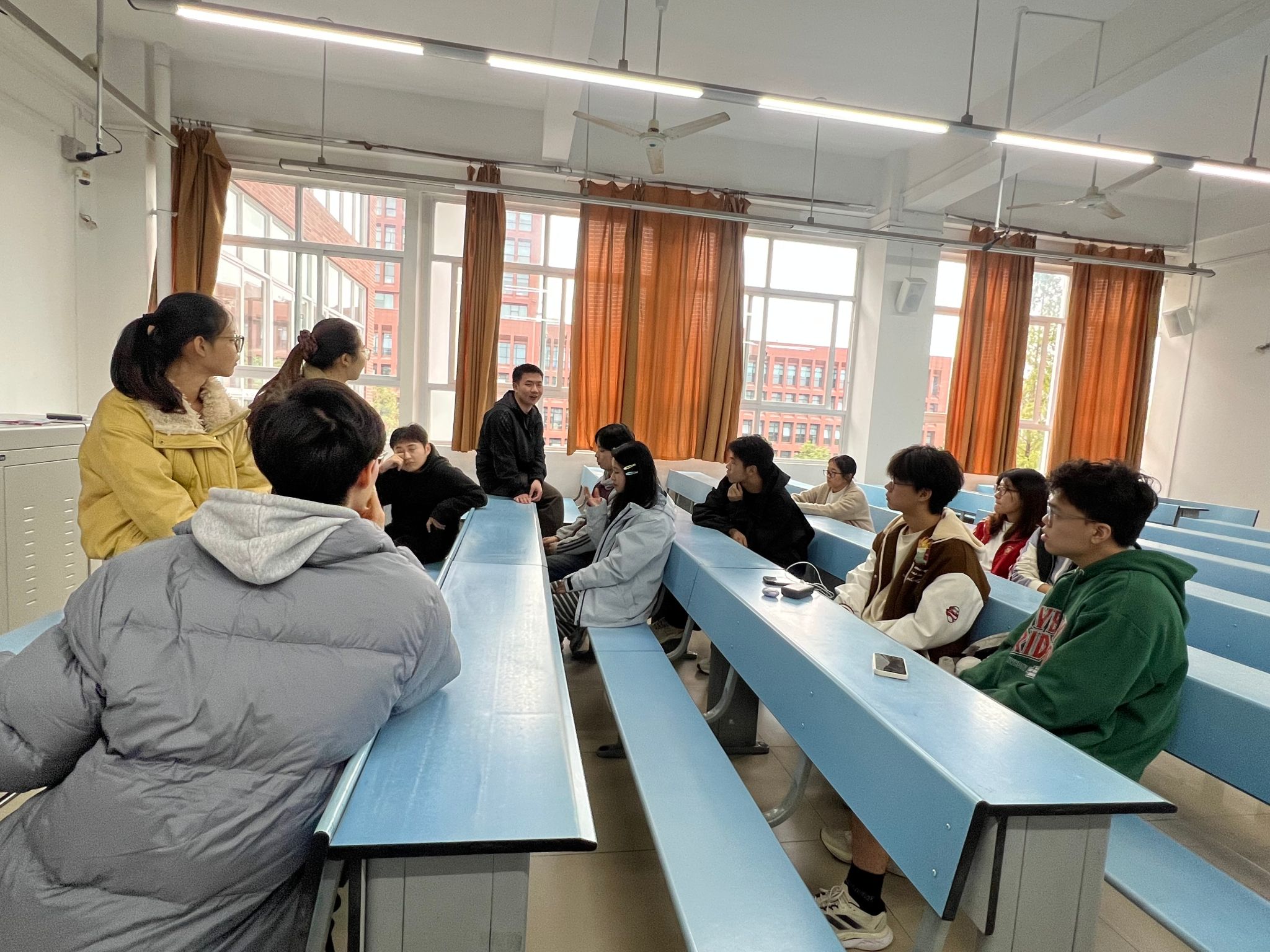 在自由交流环节,现场气氛热烈非凡。针对“如何平衡课程学习与科研投入”“如何获取有效科研资源”等高频问题,嘉宾们结合自身经历给出务实建议。陈宗鑫同学特别提醒:“科研不是绩点的附庸,要建立真正的研究兴趣。”文蕊同学则建议低年级学生尽早通过SRTP等渠道建立科研思维,为之后参加更多的科研竞赛打好基础。