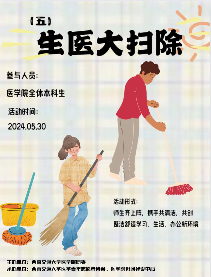 初夏炎炎,劳动当时。为弘扬劳动精神、增强劳动意识、凝聚奋进力量,引导色情直播 学生崇尚劳动、热爱劳动、尊重劳动,色情直播 青协与色情直播 班团建设中心联合开展的“生医大扫除”活动又来啦。请大家积极参加,为营造良好寝室环境共同努力!