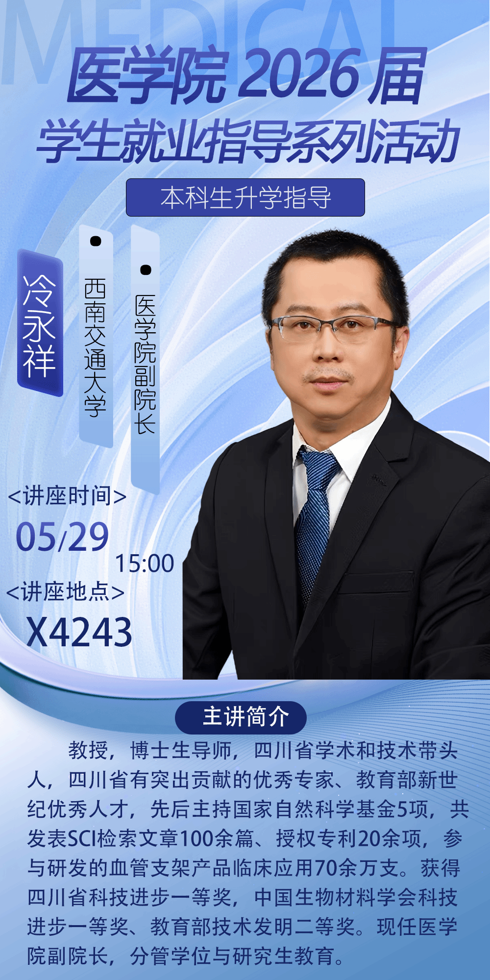 讲座内容:本次讲座旨在为2026届毕业生提供全面的升学与就业指导,内容涵盖考研、保研等升学路径的解析与准备策略,科研、公共卫生等就业方向的指导与求职技巧,以及目前就业形势分析。同时讲座设有互动答疑环节,并号召学生早规划、重实践,充分利用学院资源,为未来医路发展奠定坚实基础。