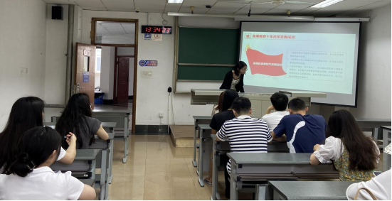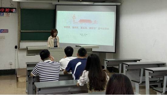 九里校区J4305B教室开展了“学思想、强党性、重实践、建新功”读书交流会主题党日活动。本次活动由党支部书记张碧花同志主持,支部党员和入党积极分子参加。张碧花、李傲霜、王森林三位同志分别围绕主题教育推荐学习内容分享了自己的观点和感悟。