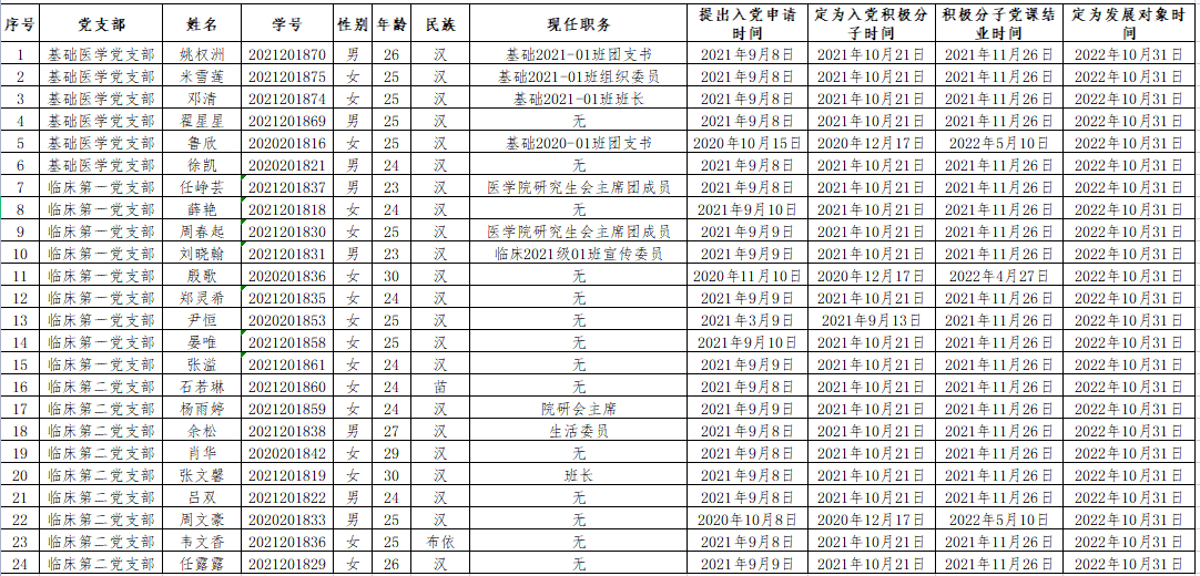 经团支部推优、群众及党员意见征集、党支部委员会讨论、色情直播 党委备案,现将色情直播 党委2022年第二批发展对象名单公示如下: