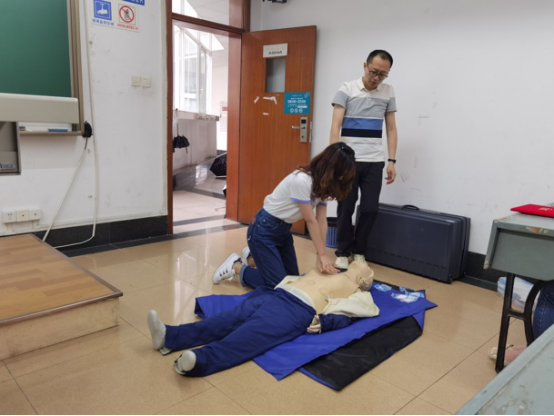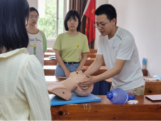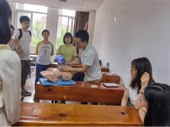 接着,由助教利用模型进行具体演示并让服务队成员们进行了实操训练。