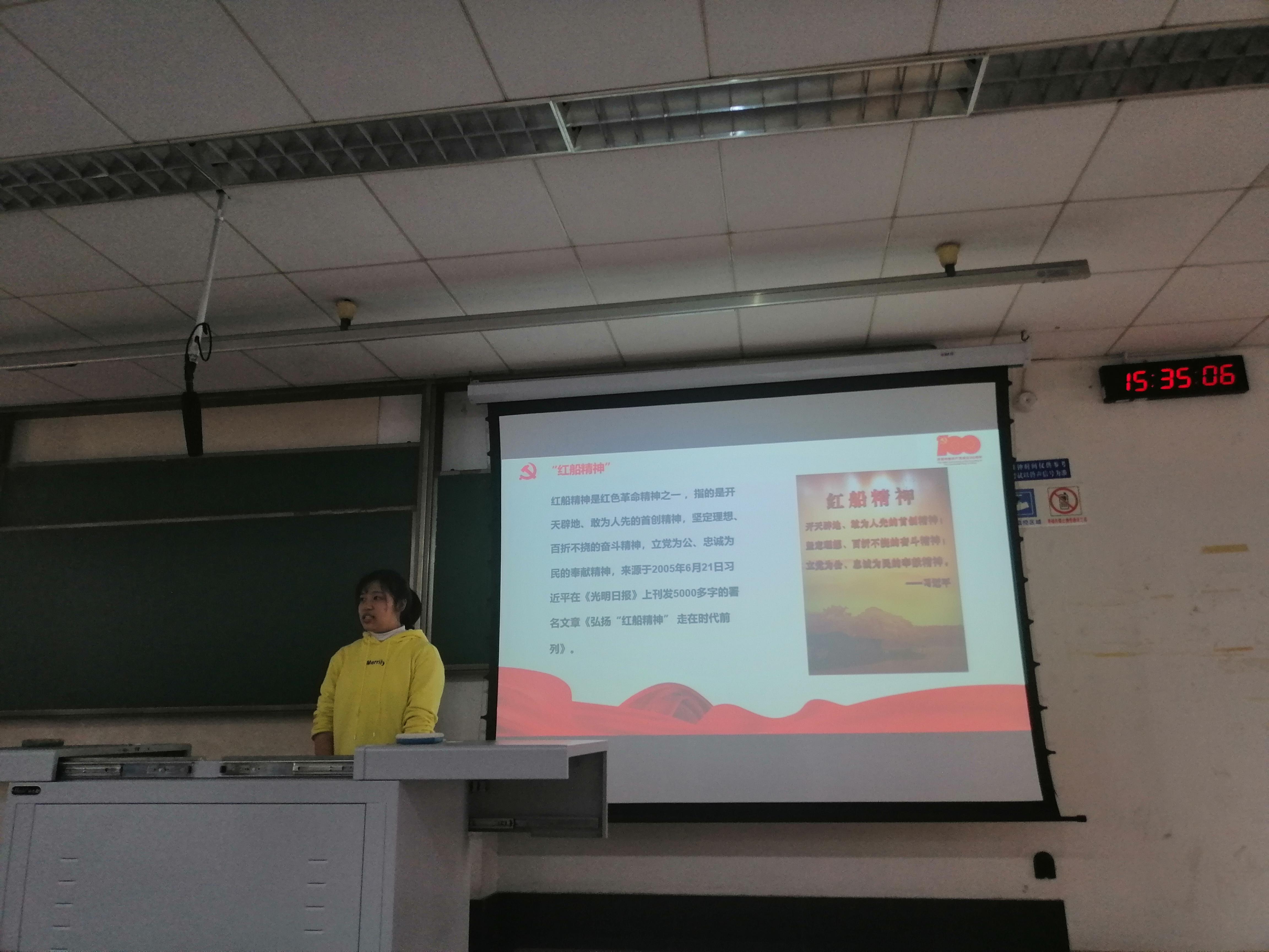 首先是由临床2020级党小组代表官敏同志带来红船精神的分享,1921年,中国共产党第一次全国代表大会在嘉兴南湖一条画舫船上通过中国共产党的第一个纲领和决议,正式宣告中国共产党庄严诞生,这条小船也被当地群众亲切地称为“红船”,红船精神是红色革命精神之一 ,指的是开天辟地、敢为人先的首创精神,坚定理想、百折不挠的奋斗精神,立党为公、忠诚为民的奉献精神。