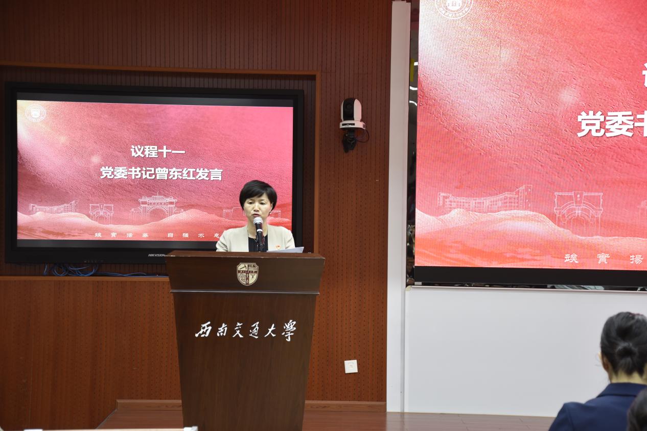 党委2025年全面从严治党大会。曾东红书记围绕加强党的建设、严明纪律规矩作专题发言,强调各党支部要筑牢战斗堡垒,扛稳政治责任;教师党员要坚守育人初心,争做师德表率;学生党员要锤炼党性修养,立志成长成才。全院上下要把严的基调、严的措施、严的氛围长期坚持下去,不断推动学院全面从严治党向纵深发展,以高质量党建引领保障学院各项事业高质量发展,为培养担当民族复兴大任的时代新人作出新的更大贡献。
