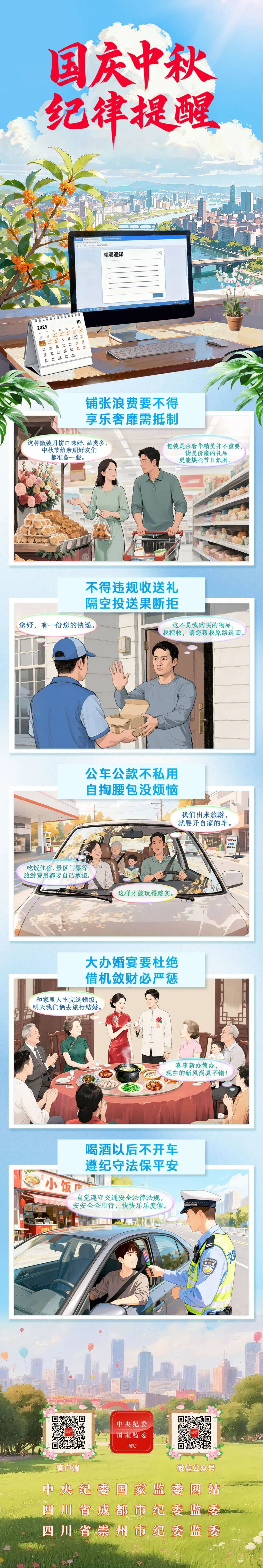 国庆、中秋佳节将至,纪律提醒谨记在心
