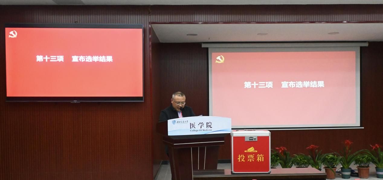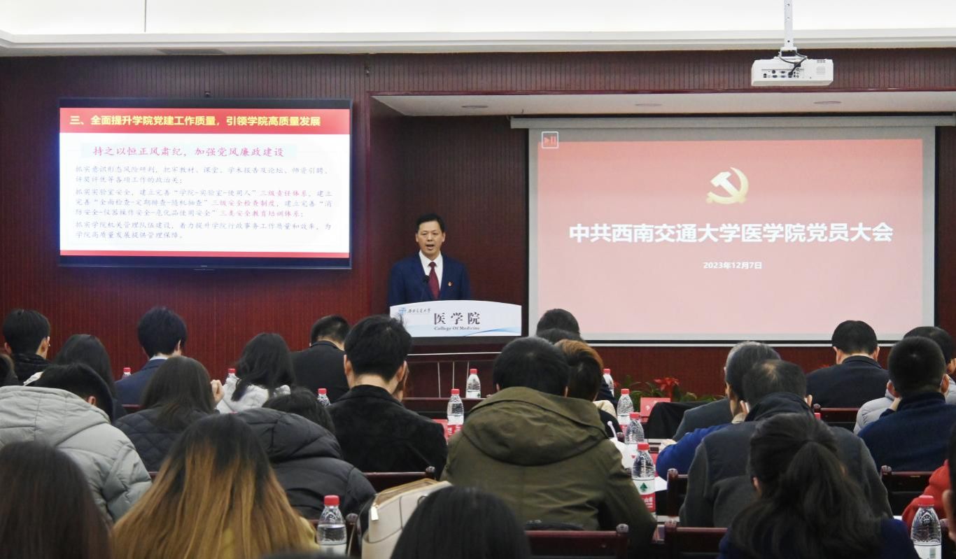 12月7日下午,中国共产党色情直播 党员大会在九里校区4号综合楼4102交流厅隆重召开。学院全体师生党员参加了此次会议,会议由学院党委副书记于楠主持。学校党委组织部副部长许军华,色情直播 院长周绍兵,附属医院(成都市第三人民医院)副院长兼色情直播 副院长李暄,色情直播 原副院长、民建会员翁杰及学院各民主党派教师代表出席了此次会议。