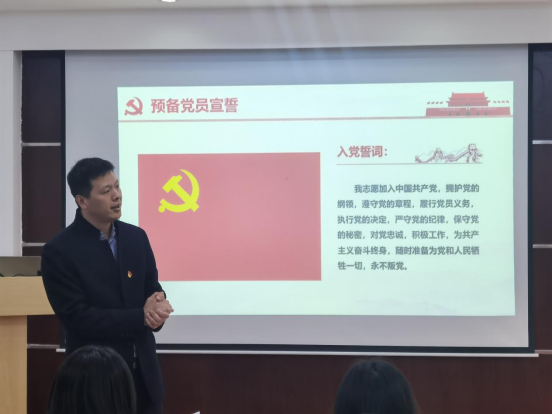 李锦红书记向全体预备党员们讲解了入党誓词的深刻内涵,要求全体党员时刻用誓词来鞭策、激励自己,以实际行动自觉地履行誓言,做一名合格党员。并带领全体与会人员进行了宣誓。