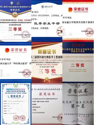 面对国旗班与班长的职责,他是一位优秀的时间管理者,为自己列出计划表和“DDL”,按照自己的设想有条不紊地把每件事做完,不仅能够兼顾各方面事宜,还为自己留出了灵活的机动时间来休息。除了在国旗班和班级中的出色表现外,任家熠还注重个人全面发展。他积极参与各类社会实践活动和志愿服务活动,丰富自己的人生经历和社会阅历。他还注重培养自己的兴趣爱好和特长,不断提高自己的综合素质和竞争力,如参加专业竞赛等。任家熠先后参加了四川省大学生生物医学工程创新设计大赛和全国大学生生物医学工程创新设计大赛,分别取得了省三等奖和全国二等奖的好成绩。